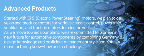 DCT (Dual clutch transmission) motors, CFM (Cooling Fan Module) motors and traction motors for electric vehicles.