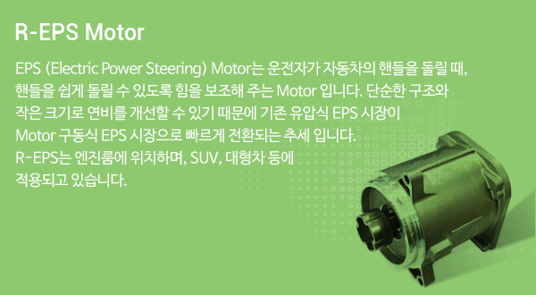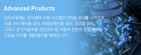 만도브로제는 EPS용 모터, ESP 및 공조장치용 모터, 그리고 전기자동차용 Tracing 모터의 개발과 생산을 위해 노력중입니다. 만도브로제는 첨단 기술을 통해 인류의 편리성과 녹색 환경이라는 미래를 향해 나아갑니다.